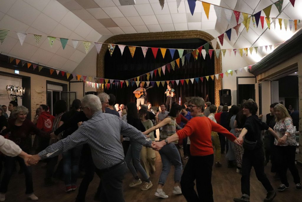 FOLK NOZ avec les Zéclectiques Acoustiques Le 8 Février 2025 a eu lieu le Folk Noz au profit de Plouër Réfugiés à la salle des fêtes de Plouër sur Rance. C’est plus de 150 participants qui ont pu danser grâce au collectif de musicien.nes amateurs bien connu de la scène folk, les Zéleclitiques Acoustiques.